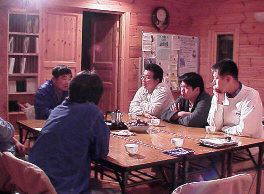 夜は八甲田の教会の信徒・堀田さんから、八甲田沖揚平地区の開発と開拓の歴史について伺いました。 (堀田明さん:八甲田に移り住んで、30数年。) |
