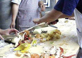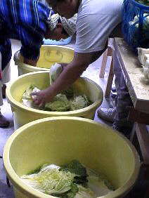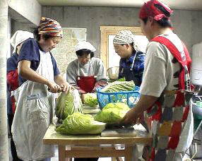 NS(東北地区学生YMCA)のメンバーも、一緒に参加。 野菜は八甲田沖揚平の地物を使います! 農村センターは「冬期の食品加工」に力を入れようと、いろいろと試みを始めています。 |