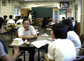 本庄さんのお話を聞いた後、みんなで分団。八戸柏崎のY先生も、お元気! |