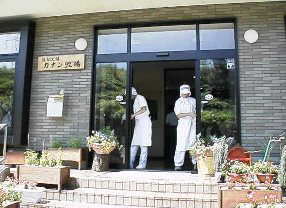 玄関では、一生懸命お掃除をしている方がいました。建物も新しいけれど、あちこちがとても清潔に管理されていました。 |