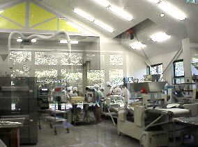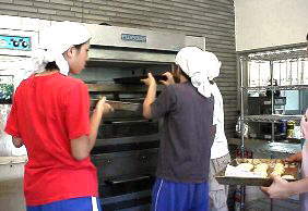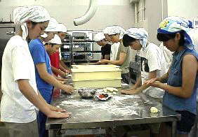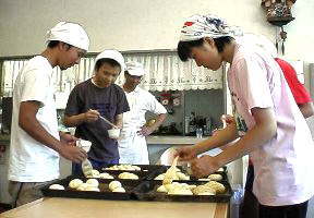 みんなで生地をこねて、好きな形のパンを作っています。ここの生地は生のイースト菌を使っているので、すごく弾力性があるんだって。 |