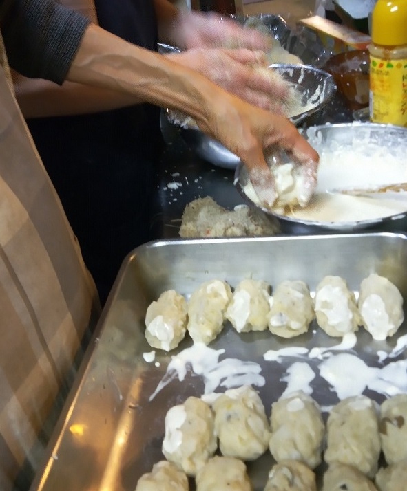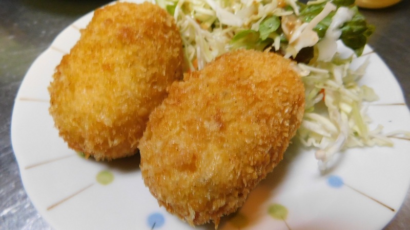 美味しい里芋がたくさん届いたので、世間的には珍しいはずの「里芋コロッケ」にしました。ぐにゅぐにゅ、べたべたの里芋は整形するのがたいへんで、じゃがいもならひとりでできる作業をふたりかがりで。炒めた玉ねぎとしめじを加えました。仕込むのに費やした苦労が報われる味になったと思っております。お客様にも喜んでいただきました。