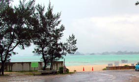 は、日本一長いものだそうです(左の写真)。原田さんはかなり大きな不動産業を経営しているのですが、その島に増設中の海水浴場のある海岸に、ホテルを建てようと土地を所有しているというのです。確かに、そこは観光用のホテルにはいい立地条件だと思えました。沖には、宮城の松島のような小島がたくさん浮かび、海の色は、天候が悪かったにもかかわらず、とてもいい色をしていました(右の写真)。