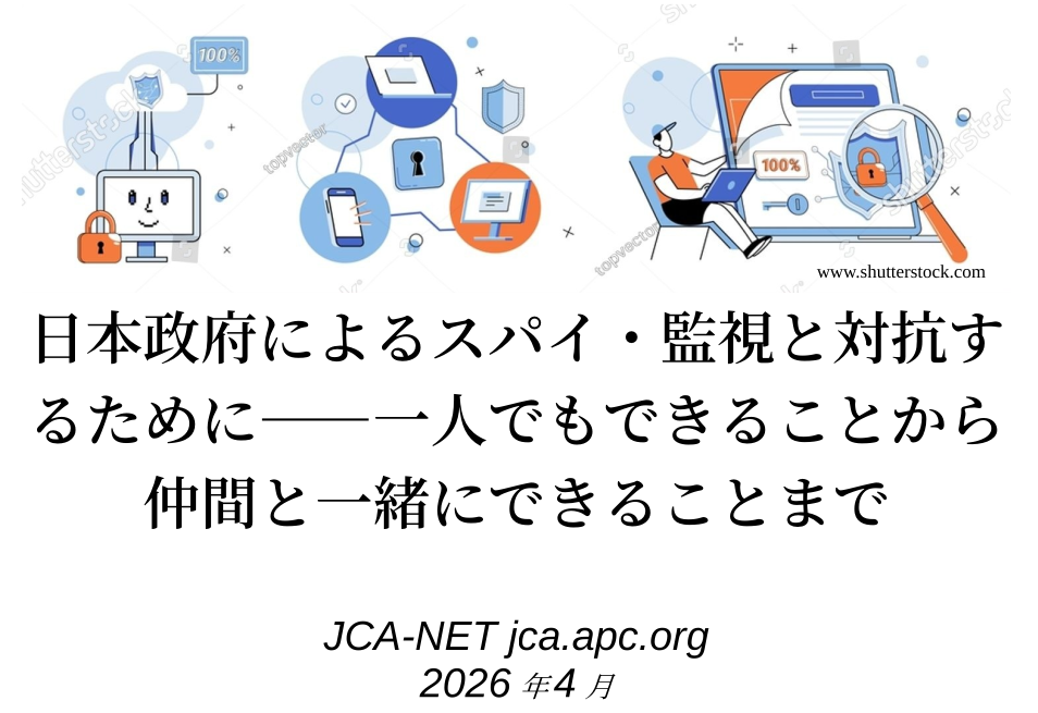 - JCA-NETパンフ最新刊『日本政府によるスパイ・監視と対抗するために』発刊