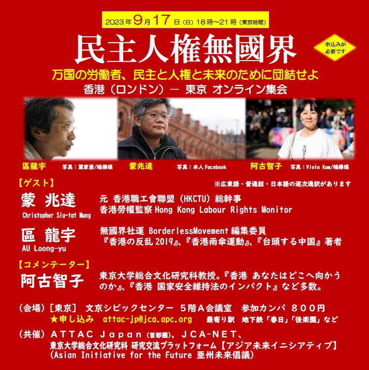 民主人権無國界 ~ 万国の労働者、民主と人権と未来のために団結せよ ~ 香港(ロンドン)- 東京 オンライン集会
