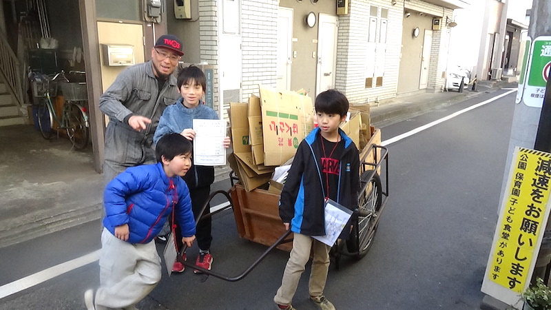 ダンボールがたくさんゴミとして出る仕事なので、資源回収してくれると助かります。それが子ども会だと大歓迎、こどもたちはリヤカーを引く仕事が終わると駄菓子屋に飛んできます。自分が子ども会会長だった時は、この資源回収の助成金でみんなでディズニーランドに行った思い出があります。自分の子どもは中学生になっていて参加していませんけど。