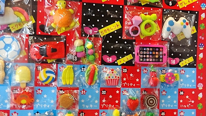 よくあることですが、駄菓子屋のクジ引きで欲しいものが当たらずにだだをこねる子どもがいます。クジの意味がわかりません。金曜もひとり、諦められない子が・・。この子は以前に欲しかった赤いスーパーカーの消しゴムを一発で当てた経験があります。お母さんに店から引き出されでも道端にすわって動きません。そこですごいことが・・。その場にいた小学生女子ふたりが自分たちが引き当てた消しゴムを分け与えてなぐさめてくれたのです。