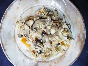 3.ニンジンもささがき、生シイタケは薄切りにします。シメジもバラバラにしておきます。
