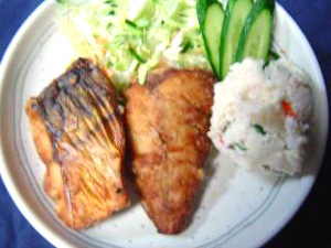 1)サバのフィレを切り分けて食べやすい切身にして、同量の醤油と酒におろし生姜にしばらく漬け込んでおきます。 ■骨なしサバフィレ