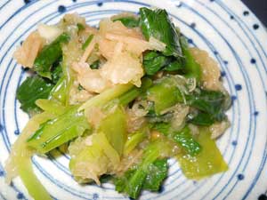 真冬になって最もおいしくなる野菜は小松菜です。さらに甘さを増している大根と、ビン詰めのなめ茸を混ぜて醤油少々で味をつけただけの和え物ですが、これが小松菜がおいしければたいへん美味となります。ぜひお試しください。 ★アシタバのかき揚げ★