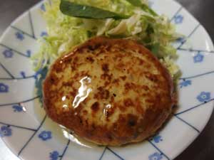 こかぶを生で丸ごと食べて栄養をとり入れることができるサラダです。1.かぶを半分にしてスライスします。2.かぶの葉と人参の細切りとかぶを混ぜて塩をふっておきます。3.しばらく置いたら水気をしぼって、4.塩・コショウ・酢、サラダ油のドレッシングで和えます。 ★★あんかけ豆腐ハンバーグ★★
