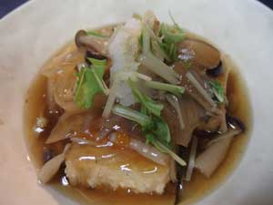 暑かった日々にはメニューにのせなかった料理が復活しつあります。グラタンと揚げ出し豆腐。木綿豆腐に片栗粉をまぶして揚げてダシ汁で食べる「揚げ出し」。野菜食堂ではダシでたっぷりのきのこや野菜を煮込んで片栗粉でとろみをつけたあんにしてかけますダシ汁は醤油。みりん各1、鰹ダシ汁6を基本にします。 ★★豚肉と根菜のうま煮★★