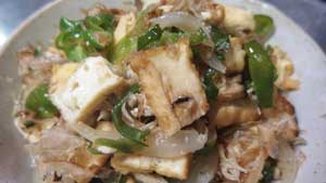 ★★ズッキーニのしめじ炒め★★ たっぷりの胡麻油でズッキーニの輪切りとしめじを炒めて、塩とコショウ、オイスターソースで味を決めます。簡単な料理ですが、これがズッキーニを最もおいしく食べる方法です。 ★★ピーマンと厚揚げ炒め★★ もうひとつオスイターソースの炒めものです。ピーマンのスライス、玉ねぎ、えのき、薄切りにした厚揚げを炒めて、塩・コショウで味を整えたらオイスターソースをかけて、全体に行き渡るように混ぜます。たっぷりの花鰹をかけて混ぜたら出来上がりです。 ★★野菜とチーズの肉巻弁当★★ このところお弁当のご注文がたいへん多く、店頭まで取りに来てくださる方が増えています。野菜とチーズの肉巻フライを主菜にしたお弁当が人気です。和風の煮物も特にシニアの方々に人気です。突然のご来店でもお弁当はすぐに作りますが、電話でメニューの打ち合わせを済ませておいていただくと早くお渡しできます。
